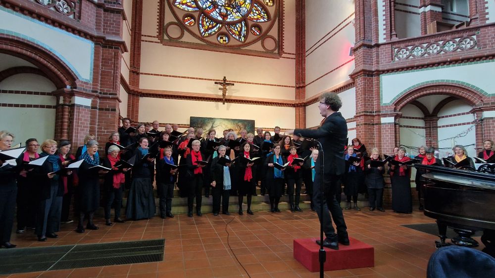 Notre concert du Nouvel An a eu lieu dès le 5 janvier dans le Dôme français du Gendarmenmarkt. Invitée par l'association « Der Mittelstand », la chorale a présenté un programme de Noël varié en cette période de fêtes qui s'achève, sous la direction de notre chef de chœur Volker Hedtfeld. Le concert a été accueilli avec enthousiasme et a fait l'objet d'éloges.